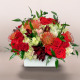 #239 Un diseño encantador que combina rosas, eucalipto y follajes de temporada creando un arreglo fresco y colorido. La base de cristal transparente le aporta un toque vibrante y versátil, ideal para cualquier ocasión.