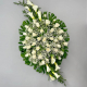 #148 Corona fúnebre diseñada con Rosas, Lirio Oriental y Hortensia mini y follaje de temporada.