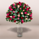 #651 Un arreglo vibrante y sofisticado creado para celebrar el amor incondicional de Mamá. Las rosas en tonos fucsia, lila y rojo profundo se entrelazan con delicadas orquídeas moradas, lirios en botón y veronicas. Un diseño rico en matices, que hacen un contraste perfecto con la base en cerámica negra.