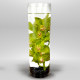 #683 Un diseño contemporáneo y lleno de personalidad: calas amarillas enmarcadas por líneas de flexigrass en un elegante movimiento circular, acompañadas de una esfera verde elaborada en dianthus que evocan fuerza y equilibrio.
